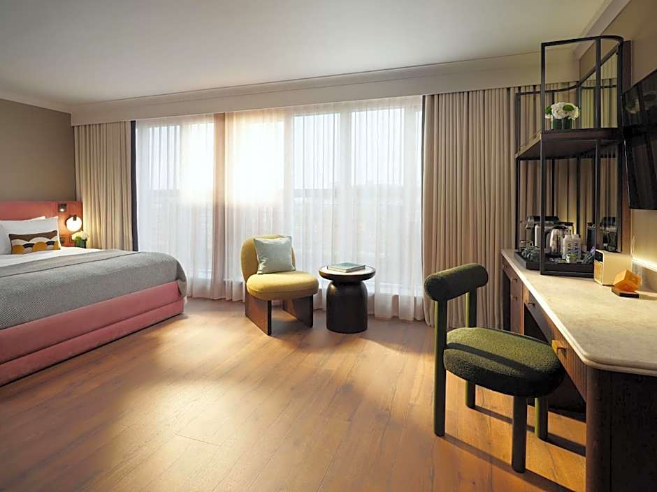 This room features a king-size bed, desk, 50-inch smart TV, radio, tea/coffee making facilities, ironing board, towels, organic toiletries and high-speed WiFi.